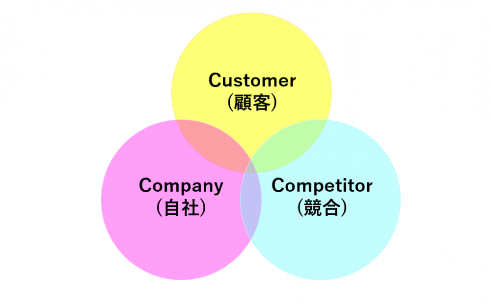 3C分析というのはCustomer(顧客)、Competitor(競合)、Company(会社)の頭文字を取ったものです。