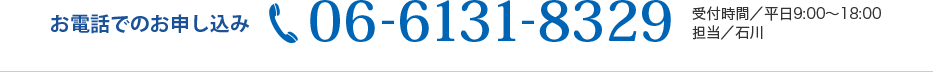 受付時間/平日9:00〜18:00 担当/石川